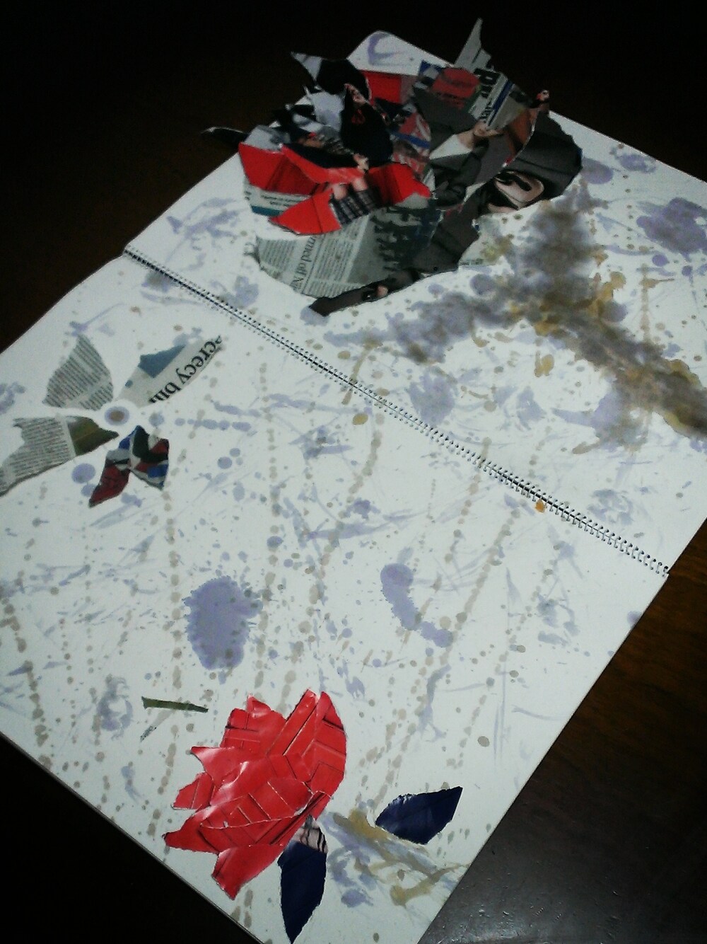 ばら。 最近貼り絵にはまりました。 墨がなかったから コーヒーと赤ワインでらくがき。 服とアートって同じ匂いがする あーたのしー。