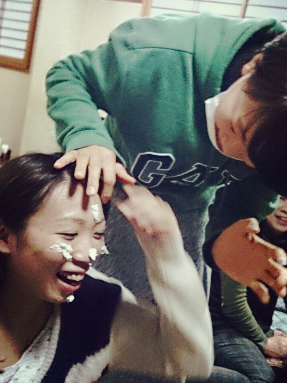 グレー系のスカート、グリーン系のパーカーを着用したレディースの冬コーディネートの1枚目の写真