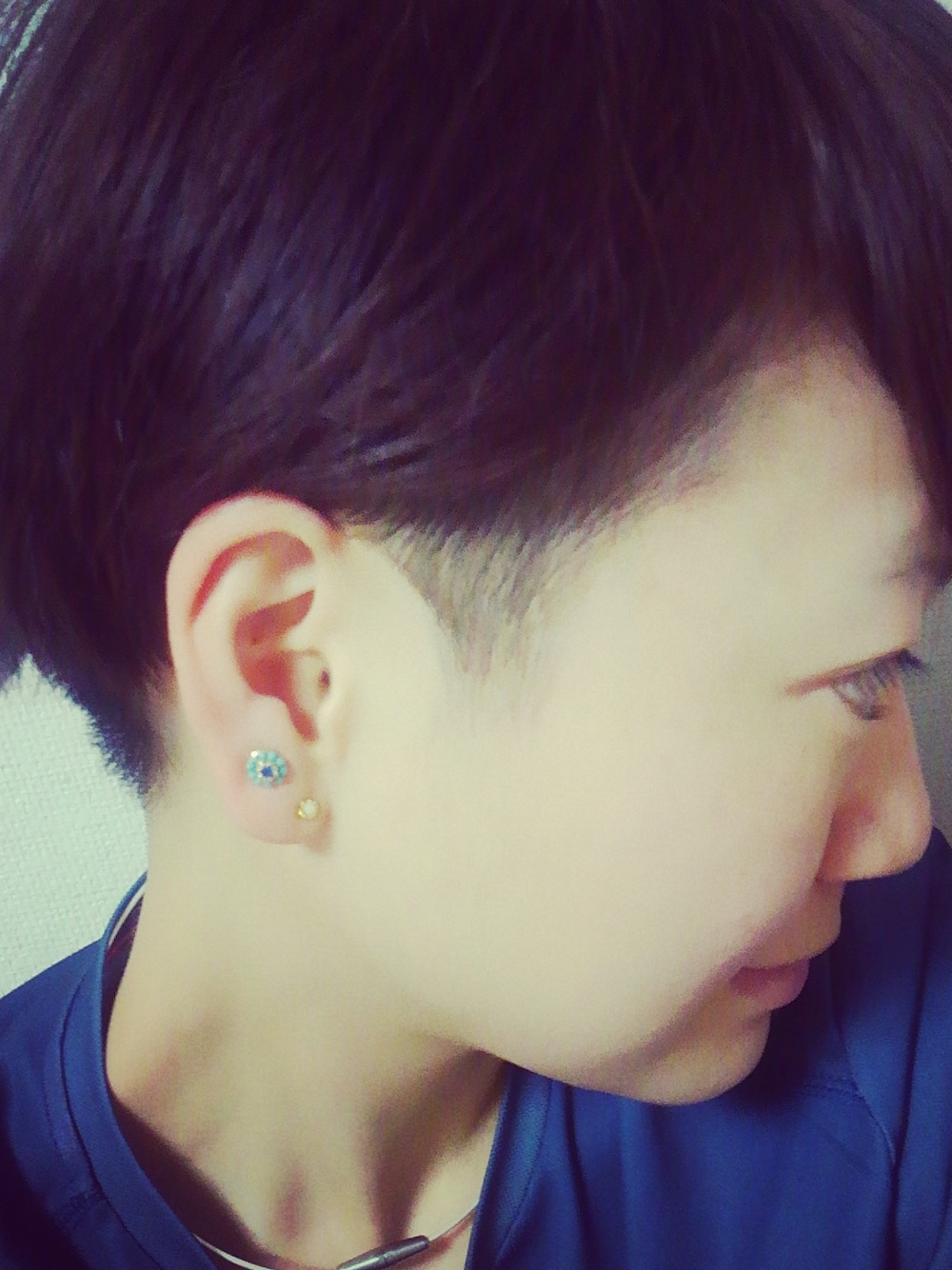 おにゅーピアス。 髪も刈り上げ さっぱりごきげーん♪