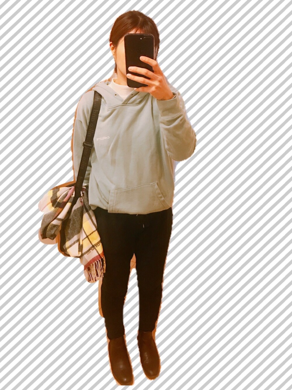 セージグリーンカラーの スウェット💕 優しい色ですきです スウェット×スウェットでも ゆるすぎないよーに 首もとは白でしめます👯