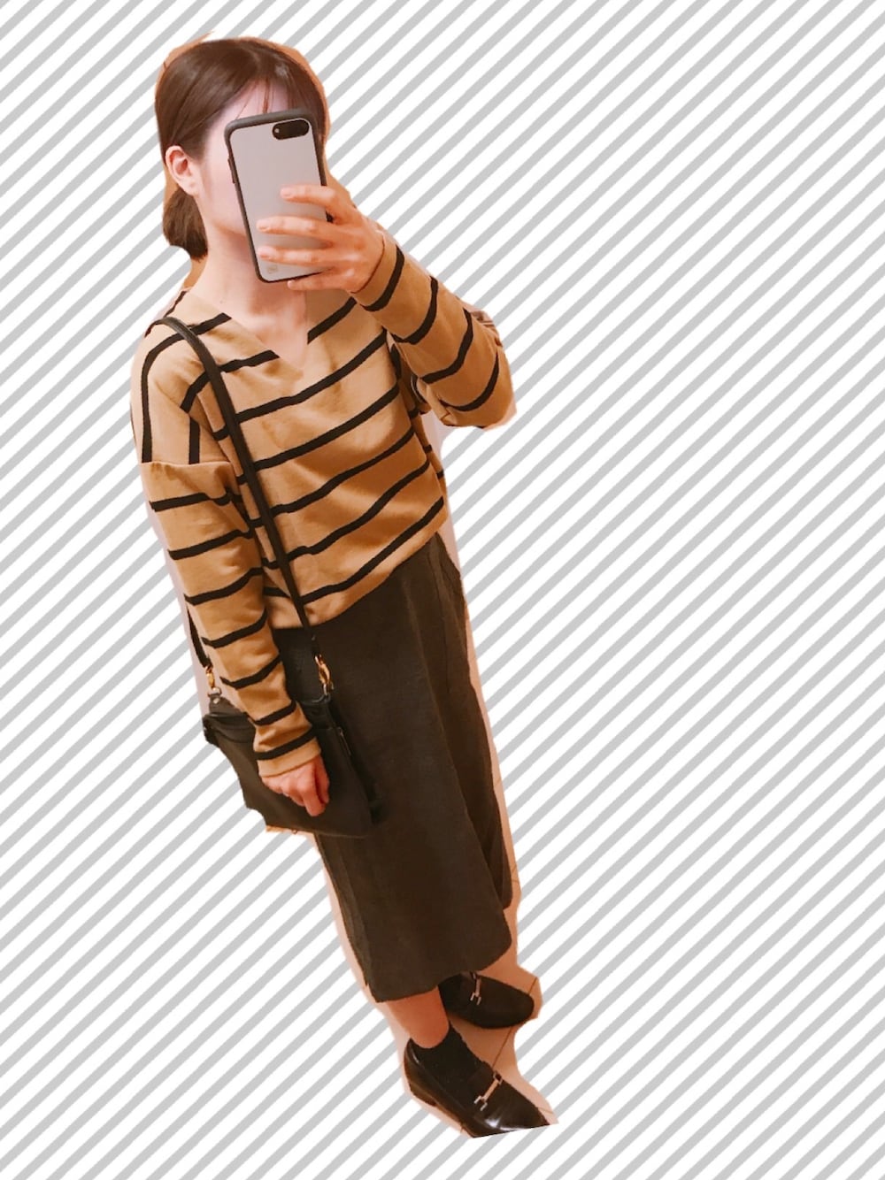 こんばんは ニットスカートのシンプルコーデ💕 Vネックが大人カジュアルに しあげてくれます🧟♂️🧟♀️