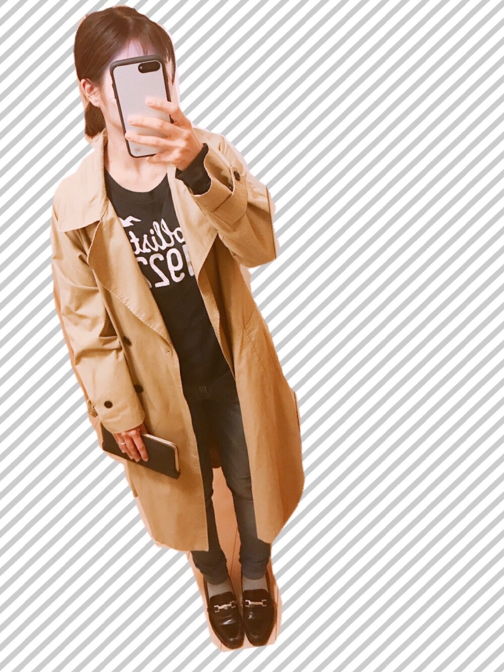 こんばんは☺️ シンプルTシャツ×ジーンズを トレンチコートでコーディネート🧚♀️🧚♀️