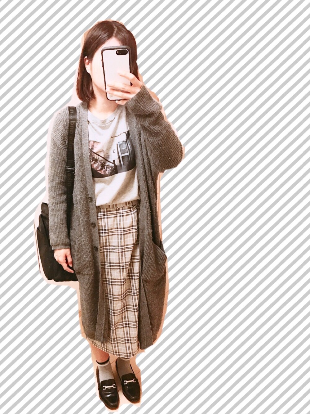 こんにちは🧚♀️ 全身グレーコーデ 濃いめカーディガンで バランス調整😬