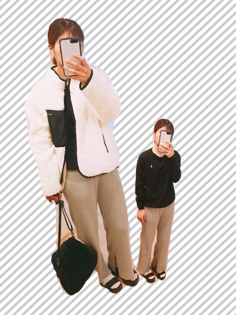 ryo.ko.naのブルゾン「配色ボアブルゾン」を使ったコーディネート