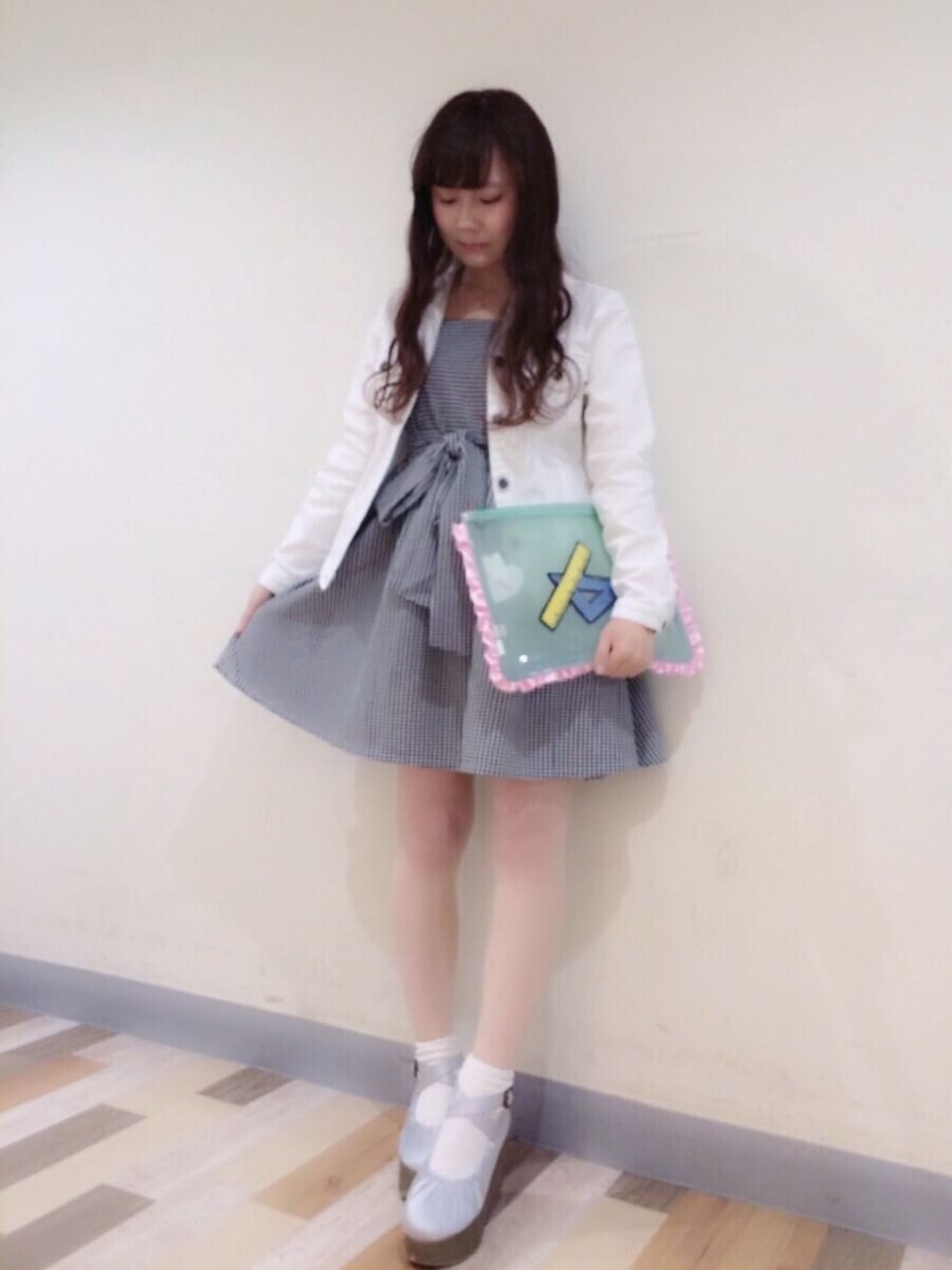 💘 merry jenny code 💘 新作のギンガムチェックのワンピース 形がきれいですごく可愛い、、♡ リボンはあえて前で結びました🙆💗 2wayなのです( • ̀ω•́ )✧ ホワイトのデニムGジャン合わせて 春コーデ🌸♡♡