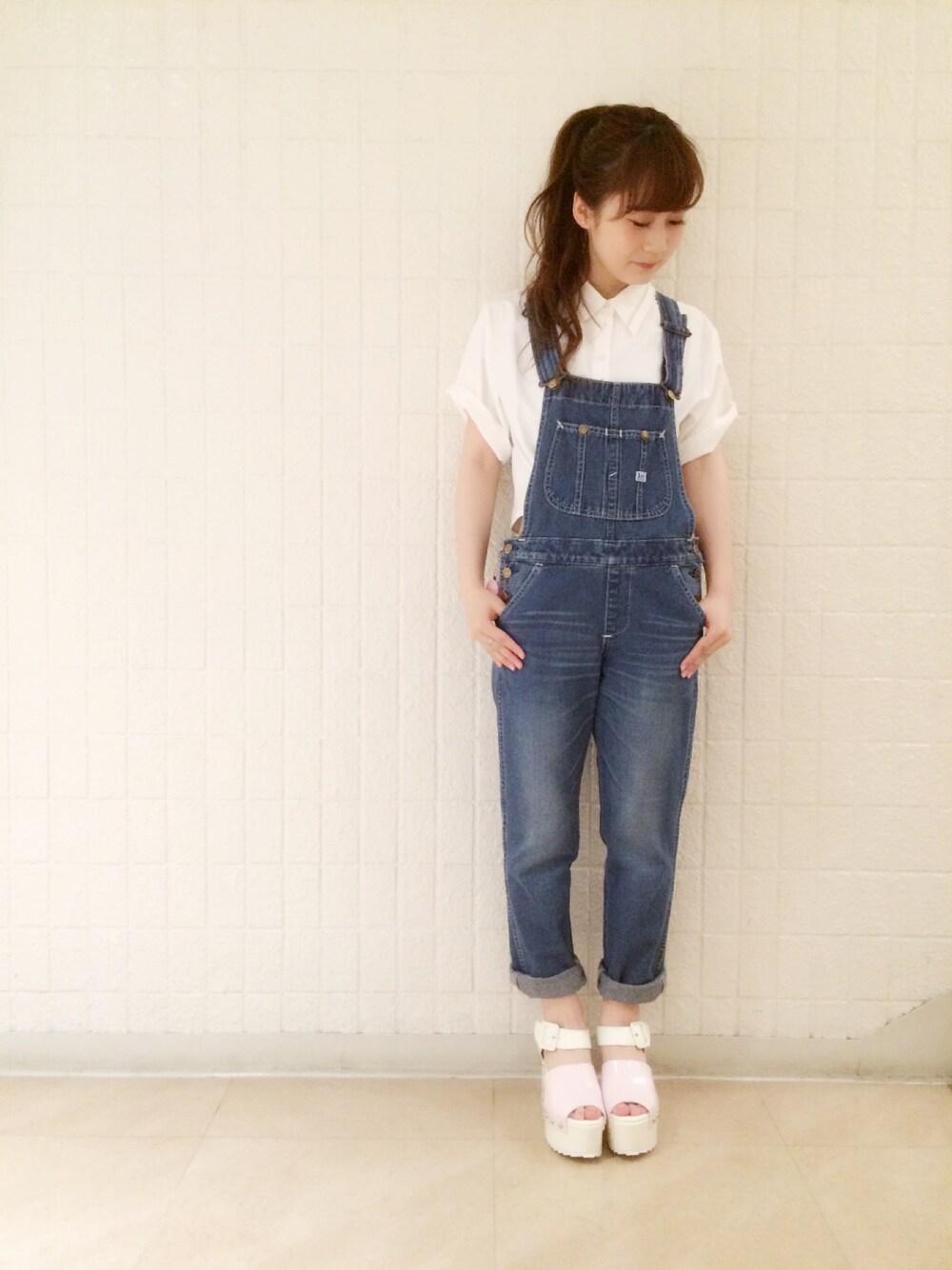裾リボン半袖シャツの着回し part 1 ... ♡ Leeのオーバーオールで ちょっぴり大人カジュアル !