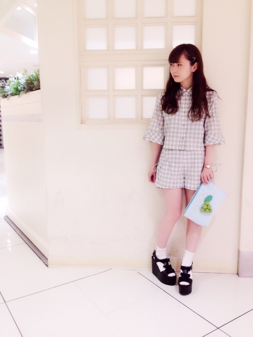 ギンガムチェックのセットアップに 新色が、、♡ ぜんぶ可愛くて迷うけど、 淡い色が好きなのでグレーで☆彡