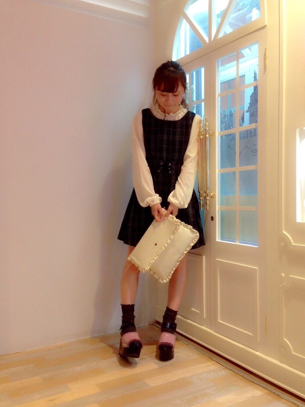 merryのワンピースは形が綺麗で好き! フリルのブラウスを重ねて着て とことんガーリーに、、♡