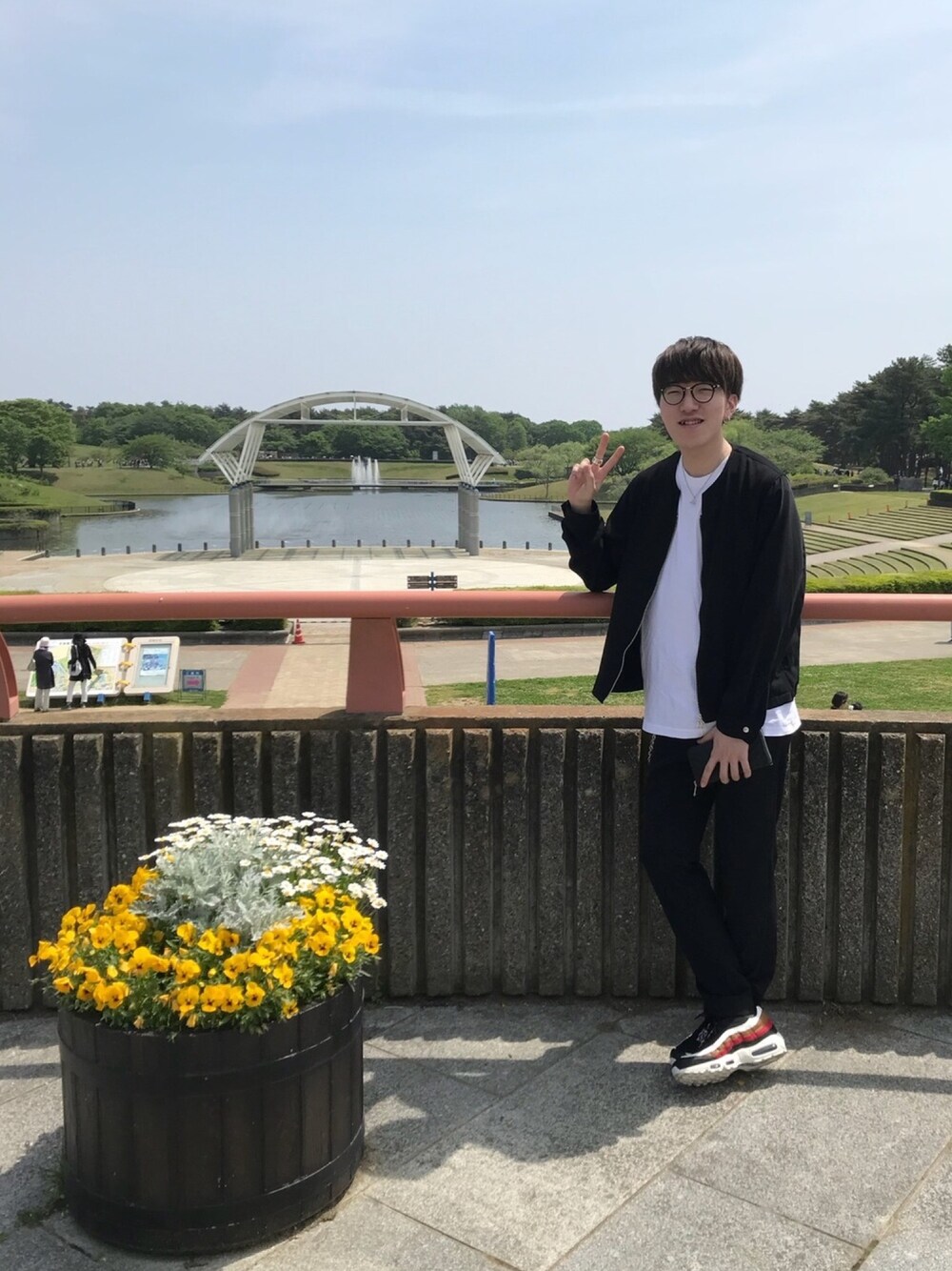お久しぶりです!笑 中々コーデあげられなくてすみません🙏 マイペースになってしまいますが、許してやってください🤓(←何様だよ笑) さあGWということで、場所は茨城のひたち海浜公園というところに行きました! ネモフィラという花が一面に見れました!💐 めちゃくちゃきれいでした!小窓に写真載せときますね!皆さんも機会があれば行ってみてください!😄 さて、コーデはモノトーンにスニーカーで差し色アクセントを加えました! このスニーカーめちゃかわいいんですよ😍 配色が好きです何と言っても! その上エアマックスなので歩きやすいです!めちゃお気に入り👍 このノーカラージップブルゾンはテロテロしてて風通しもよく着やすいです! きれい目な感じのコーデにスニーカーを履くことで、ハズしが効いてていいコーデになったと思います! それではまた✋️