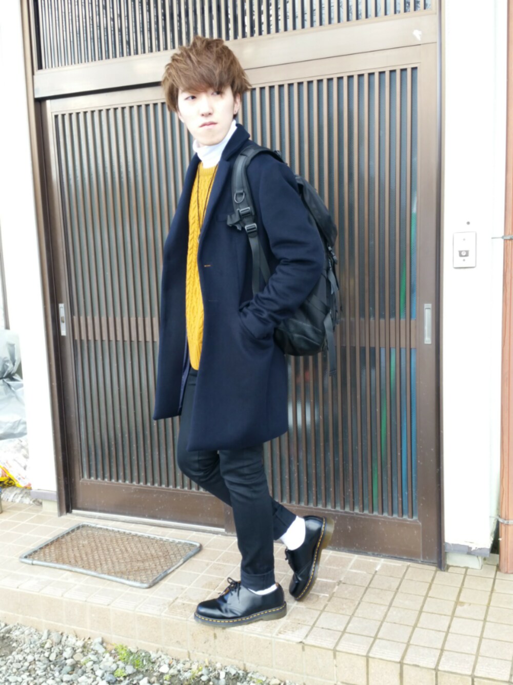 こんばんは! いつもいいね、save、フォローありがとうございます😊 今回のコーデはテーマがあって、冬っぽくチェスターコーデをやったんですが、春っぽい色を入れたくて、黄色のニットを取り入れたっていうコーデです!まだ早いかな笑 ちゃんと説明すると、他が暗めなので黄色のニットで差し色を加えたって感じです👍 このMEMENTISMのバックパックはデザインに惚れましたね!スタッズが施されていてかっこいいなと思いました👍 この日は暖かかったですね~☀ 春の訪れも遠くないです💫 それではまた🙋