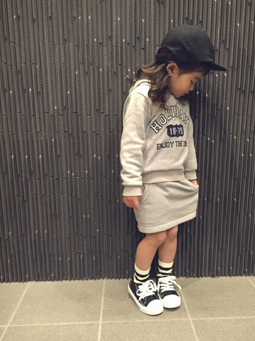 yunのワンピース「先染め裏毛フードコンビOP」を使ったコーディネート