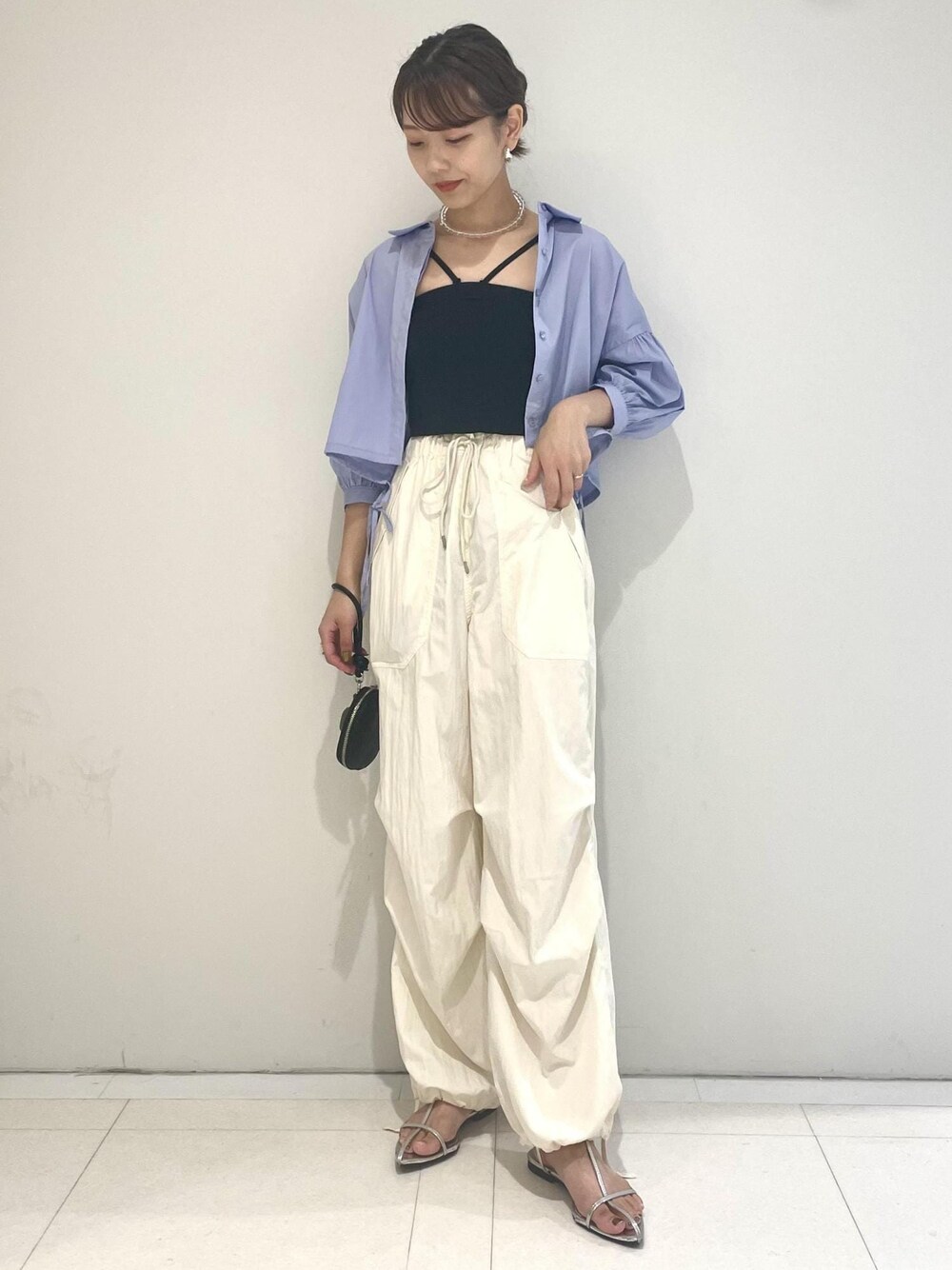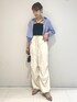 白カーゴと短めシャツは今季外せないトレンドアイテム♪ カーゴパンツはシャツとの組み合わせだとカジュアルさが落ち着き、挑戦しやすいです◎ 今の時期から秋まで着用できるコーデです。