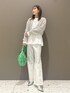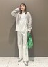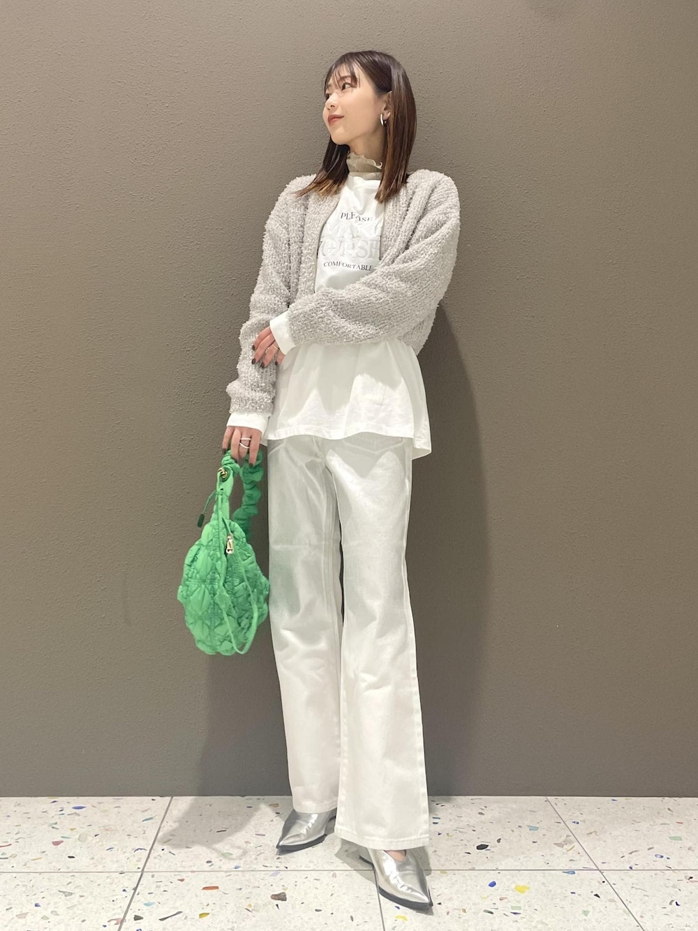 春らしくホワイトなワントーンで。 差し色のグリーンがメリハリが出ます◎ 短めなカーディガンはロンTと合わせることで普段使いしやすくなります。