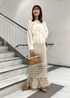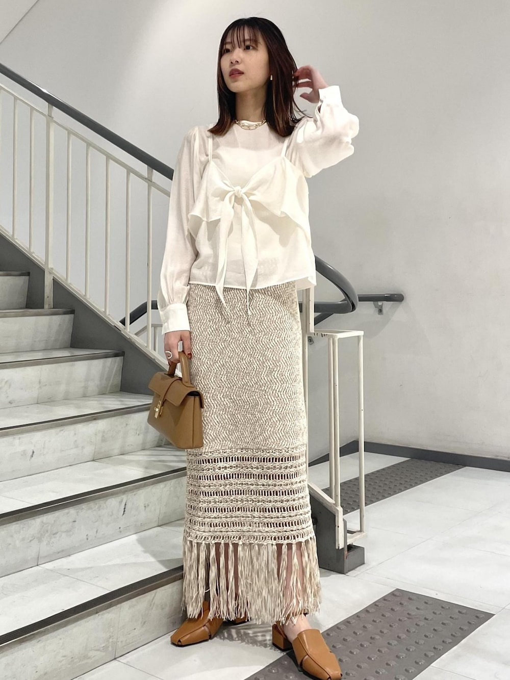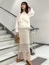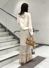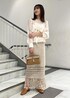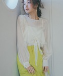 鍵あみのニットスカートはシアーの軽めなトップスと相性抜群◎ 大人っぽいタイトスカートなので淡色でまとめ 甘めなスタイリングにしてみました。