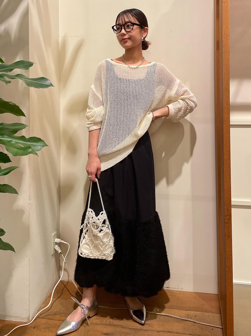 メッシュニットと合わせればノースリーブのワンピでも腕が隠れるので安心です。 カジュアルテイストなメッシュニットにすることでフェミニンなワンピースも普段使いしやすくなります◎