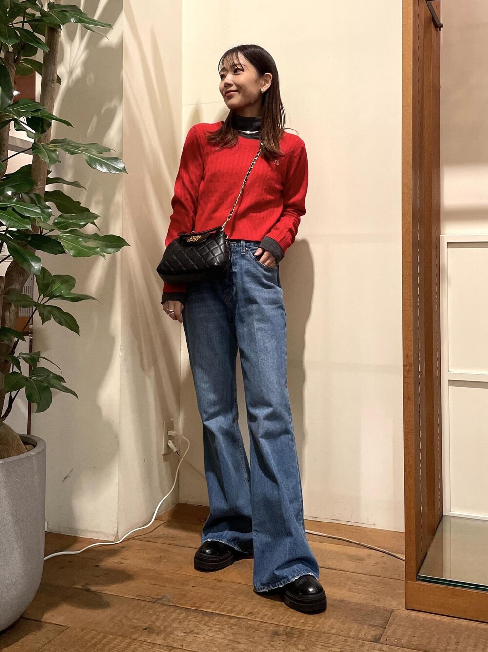 人気のケーブルニット。 今年は赤が気になるので選んでみました♪ シンプルに一枚でも可愛いですがハイネックとのレイヤードも雰囲気を変えて楽しめます。 春先まで使える長く使える素材感です◎