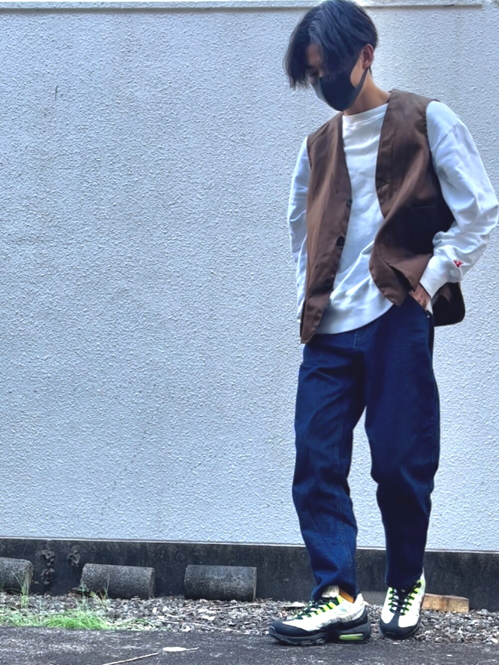 きゃんのデニムパンツ「Wide tapered denim/ワイドテーパードデニムパンツ」を使ったコーディネート