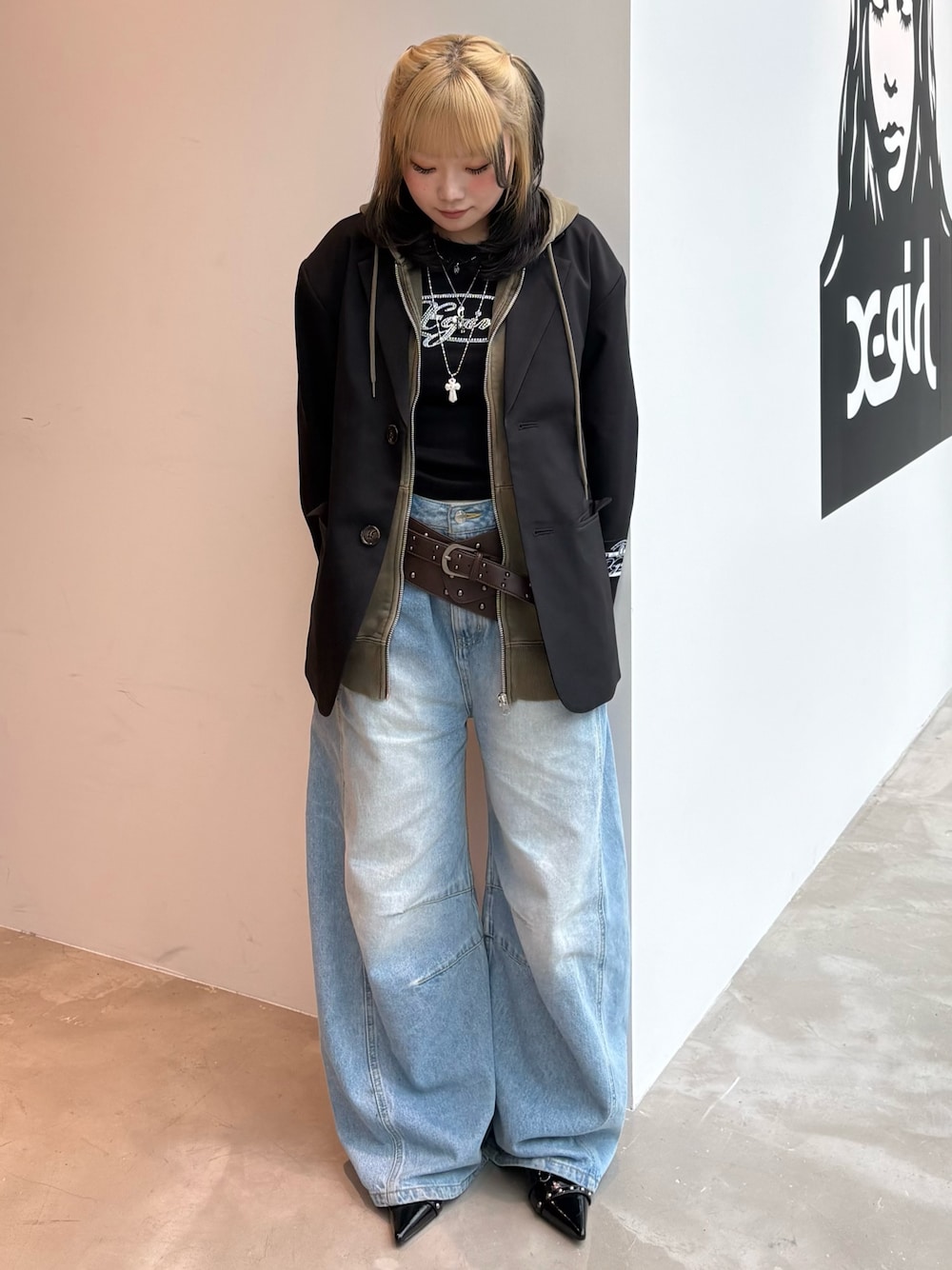 まさこ(XLARGE/X-girl神戸(X-girl))のテーラードジャケット「FACE LABEL TAILORED JACKET」を使ったコーディネート