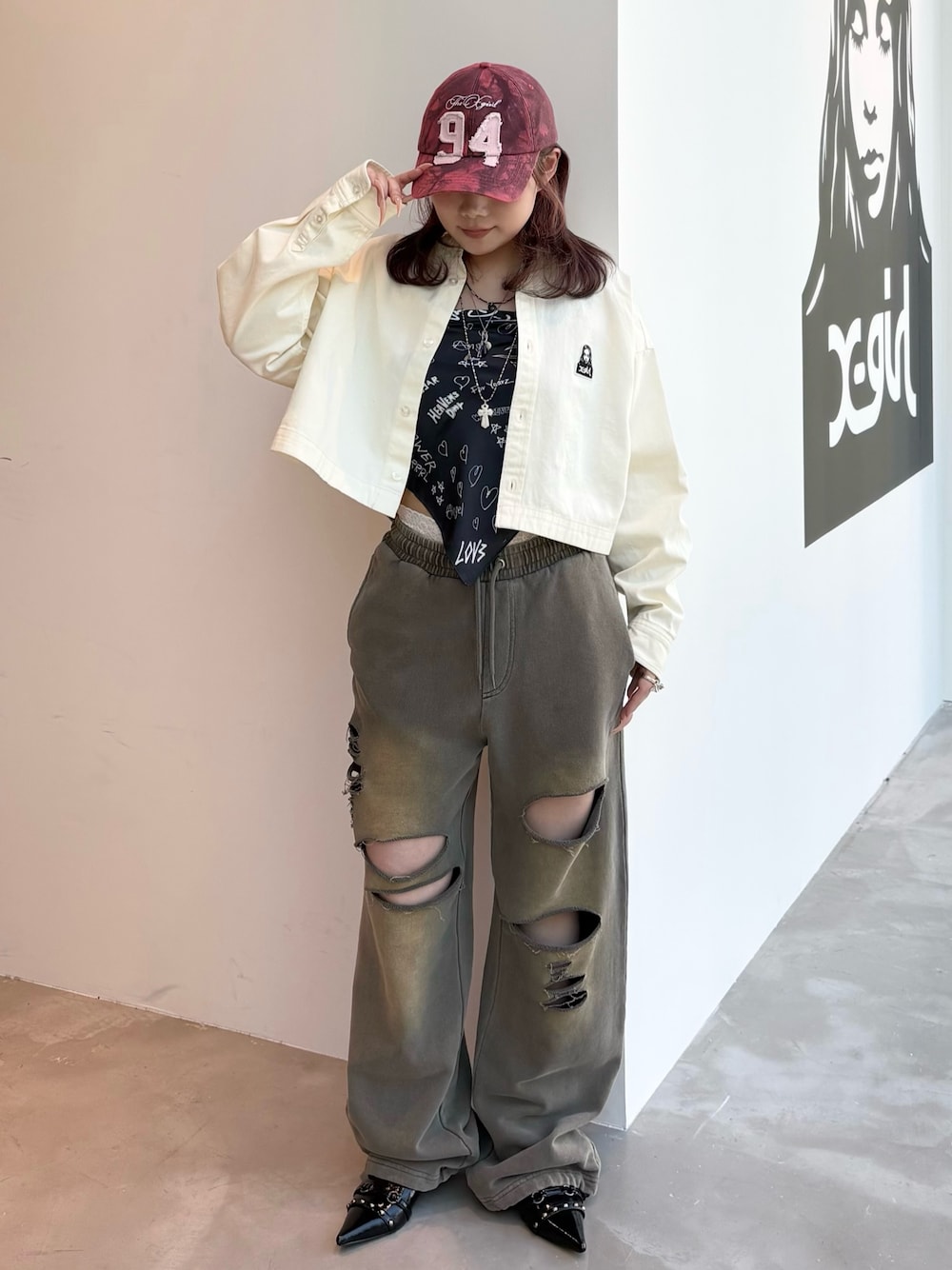 まさこ(XLARGE/X-girl神戸(X-girl))のスウェットパンツ「DISTRESSED SWEATPANTS」を使ったコーディネート