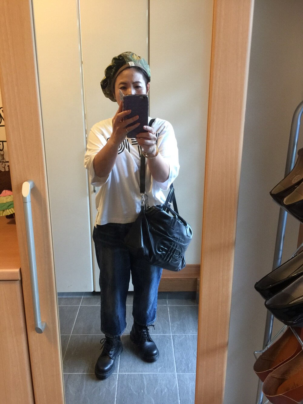 ミリタリー。 長袖の羽織りもの着ようと思ってたけど、今日はかなり蒸し暑くてTシャツだけになってしまい、ちょっとチグハグな感じかなあ?
