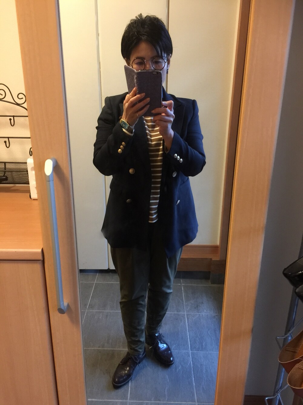 去年購入した金ボタンダブルの紺ブレ。 昔流行ったからなんか若い頃思い出します😅