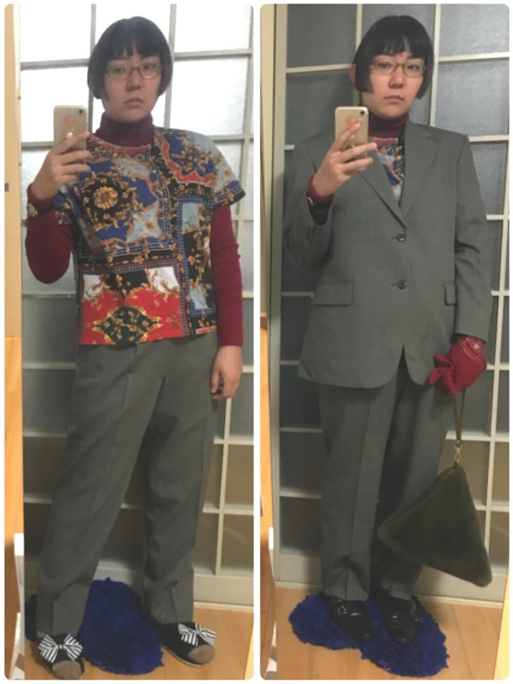 年始コーデ二発目。 おはようございます、みひろです。 四日からなんで病院行かなあかんねんコーデ。 私…ZARAの変な柄のやっすいペラペラのTシャツ…大好きですわ…(*❛⊰❛)ʓਡ~❤ 昔のシノワズリ調のも二枚ある…それはほぼ家着だけど…。 今回のスカーフ柄ぽいのはスーツと合わせたくて買った。ほんとはTシャツ一枚の上からジャケットで着たかったけど季節的にタートルネック仕込んだ。早く着てみたかった。あともう一枚ある。それは黒ベースで、茶スーツに合わせたいと思う。