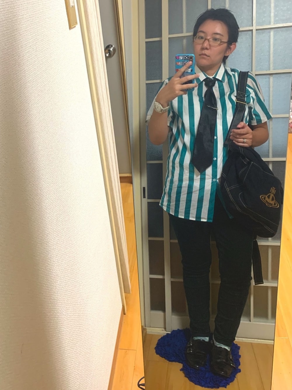 マニッシュと言われたコーデ。 ちーーす...みひろです...。 職場実習に来る女子大生がモデルをしているとの事で張り切ったんですが私が休んだ時に実習が終わったそうでめかし損でした。帰りに雷雨に遭って髪もぐしゃぐしゃのコーデ画です。