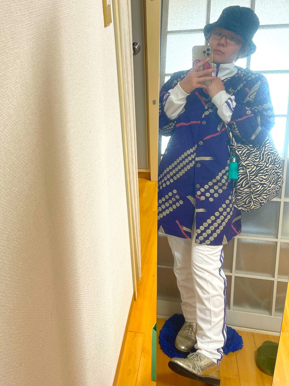 普通のプレイではいけなくなった人(ファッションにおいて) ドンキの芋ジャージ、白地に紫ラインの不良校配色が最高に最低過ぎて買ってしまいました。金髪でこれを着て鏡の前に立つと最高に頭悪く見えて(実際悪い)かなり興奮します。しかしそれのみで外出する勇気はまだ出ません。なので毒には毒のようなコーデをしてしまいました。なんだコレと思いつつ興奮する。