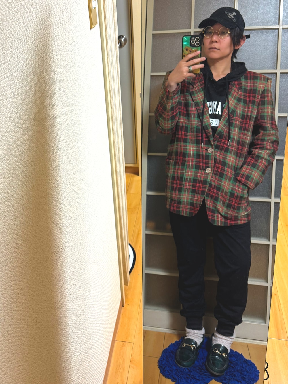 ちょいとラフラフなのも。 家着のスウェット上下にジャケ重ねで近所ブラブラワンマイル。 なんか友達夫婦が家に来てくれた日コーデや、父の誕生日を軽く祝った日のコーデ等、あげたいのは色々あるけど、また明日にでもしようかな。明日はコーヒー屋さんに、小鍋で出来る生豆の焙煎を教えて貰いに行きます。コーヒーをがぶがぶ飲むのは止めて、美味しい物を1日数杯、と決めて、じっくり楽しむ事にしようと。タバコも今減煙中、目指す所は禁煙です。公的機関の方にフォローしてもらってます。そのせいか最近まともに食欲があるんですよね。今日友達に奢ってもらったコーヒーとケーキが美味しかった...‼️身体の不調や体力もマシになりそうで嬉しい。けど体重は増えてきてるし身体のラインもまたもたつきが...💦でもそれは通所で歩く‼️なんだか元気になってきた‼️私はやれる筈だ‼️BBAだし‼️(beautiful brilliant age)(うるせえよ)
