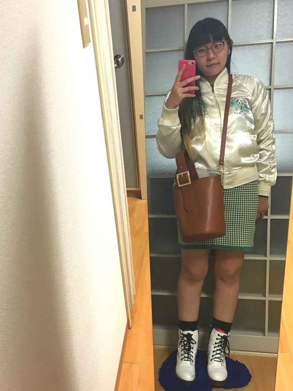 これは前回の分の夕方、肌寒く感じて上着とブーツを足しました。 こんばんは、みひろです。いいねお気に入りコメフォロー、ありがとうございます😙🌺最近はじわっとフォロワーさんが増える傾向があるので嬉しいのです。本当にありがとうございます💗 このコーデの辺りが体調崩れ始めで、うっすら寒気がして、防寒しました。商店街に小さなリサイクルショップができていて、店頭に、深い青のサテン?シルク?で、ポパイの刺繍がばんっと入ったパジャマが。可愛い…と思って見てたら店員さん、「それ可愛いですよね!韓国から仕入れたんですよ💗」と。お値段を聞くと3800円。他の安くて可愛いパジャマに目星をつけている私は泣く泣く諦めました。 店員さんは他のポップな服を、こちらとか似合いそう…と出してくれたんですが、「もうちょっと若い時に着たかったです…今年もう三十なんで…。」って言ったら、ちょっと間が空いて 「えっ、見えないです〜。」と、 言 わ せ て しまいました…! ごめんねおねえちゃん!
