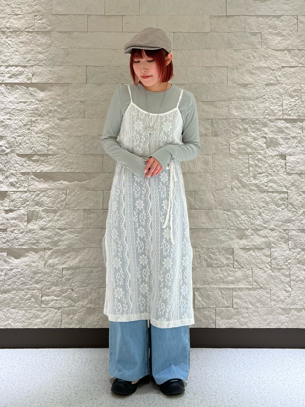 レースやミントカラーと合わせて、全体的に春らしく。レースなどと合わせるとハンチングもメンズライクになりすぎず、合わせやすいです🔣🪷 instagram @or_29c
