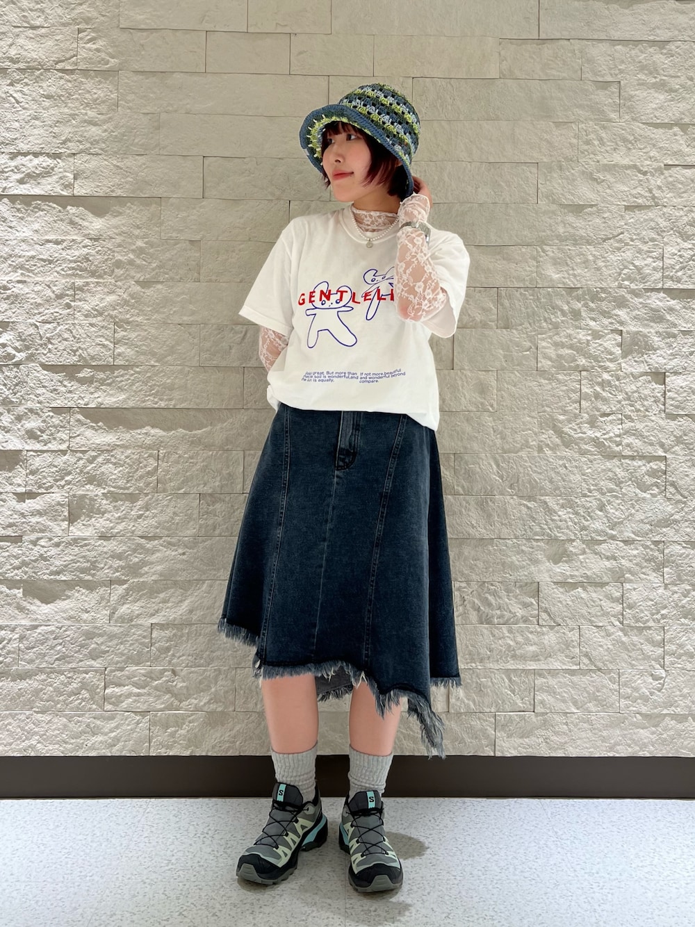 tsukushi(OVERRIDE 阪神梅田本店)のハット「OVERRIDE PAPER CROCHET TILE TULIP / オーバーライド」を使ったコーディネート