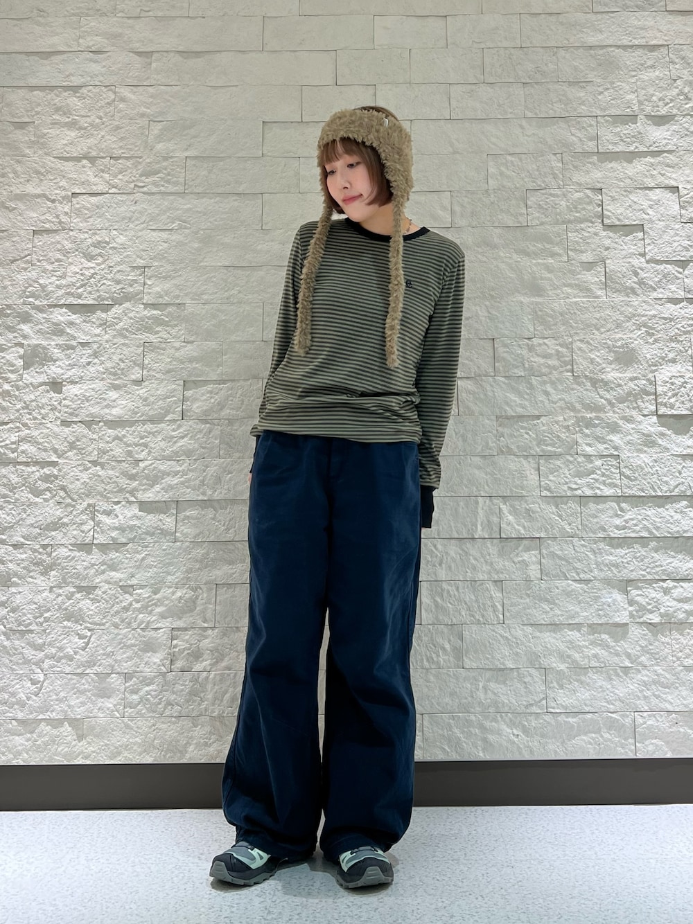 tsukushiのヘアバンド「OVERRIDE KNIT FURRY FLAPBAND / オーバーライド」を使ったコーディネート