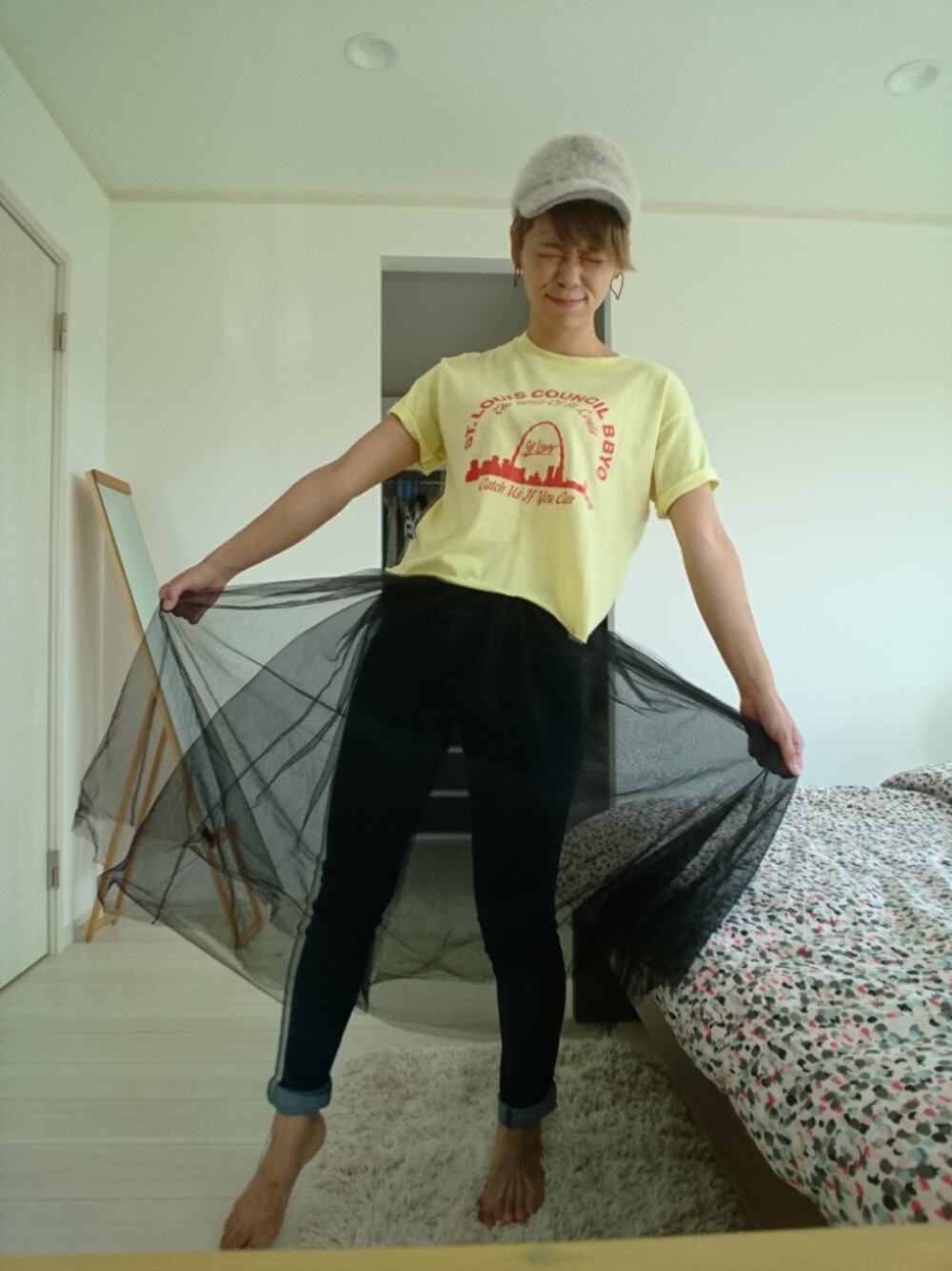 あべひとみみみのキャップを使ったコーディネート
