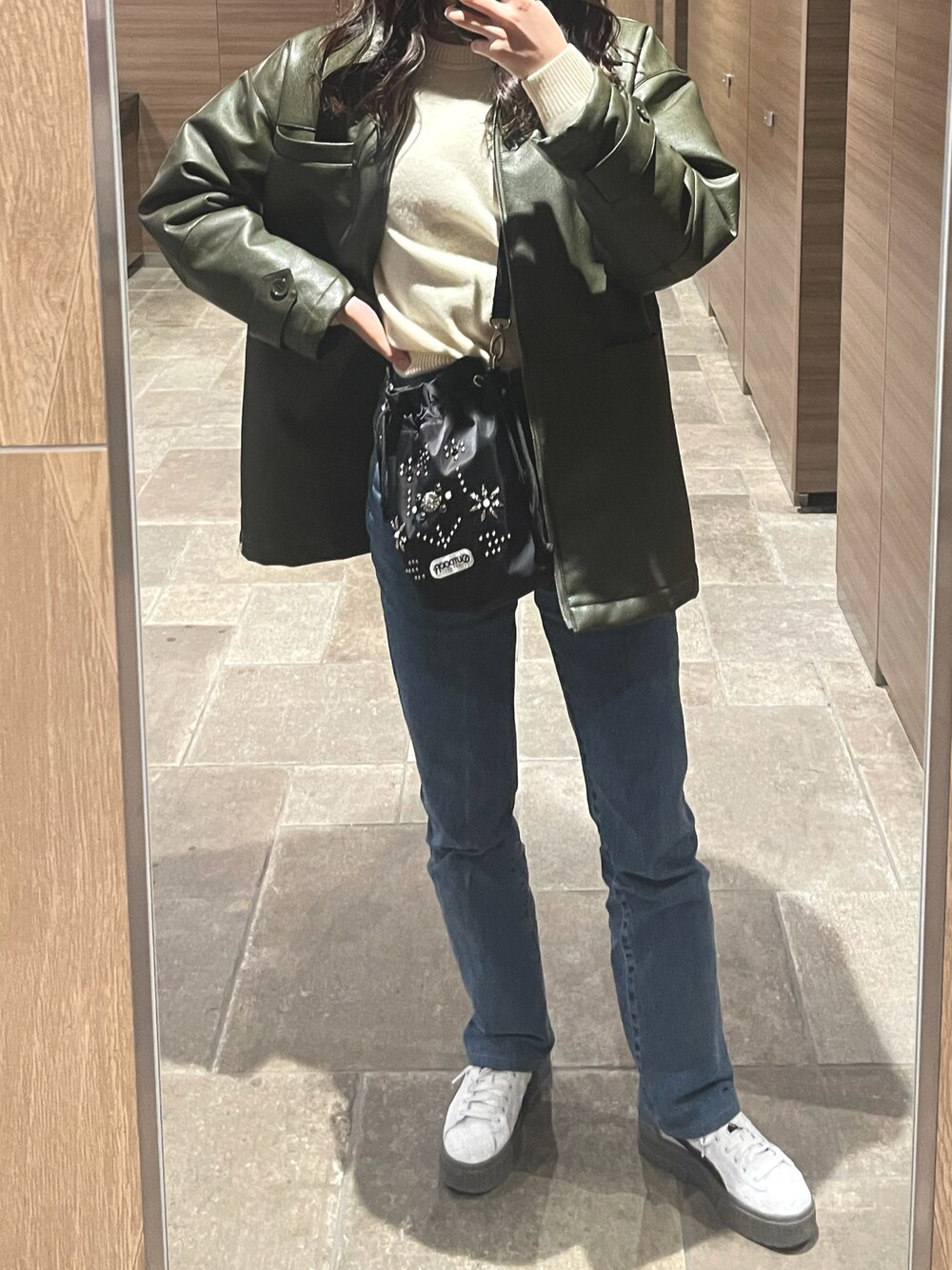 一目惚れした巾着バッグ👛🤍 ショルダーより手で持つ方が可愛かったかも( ; ᯅ ; `)