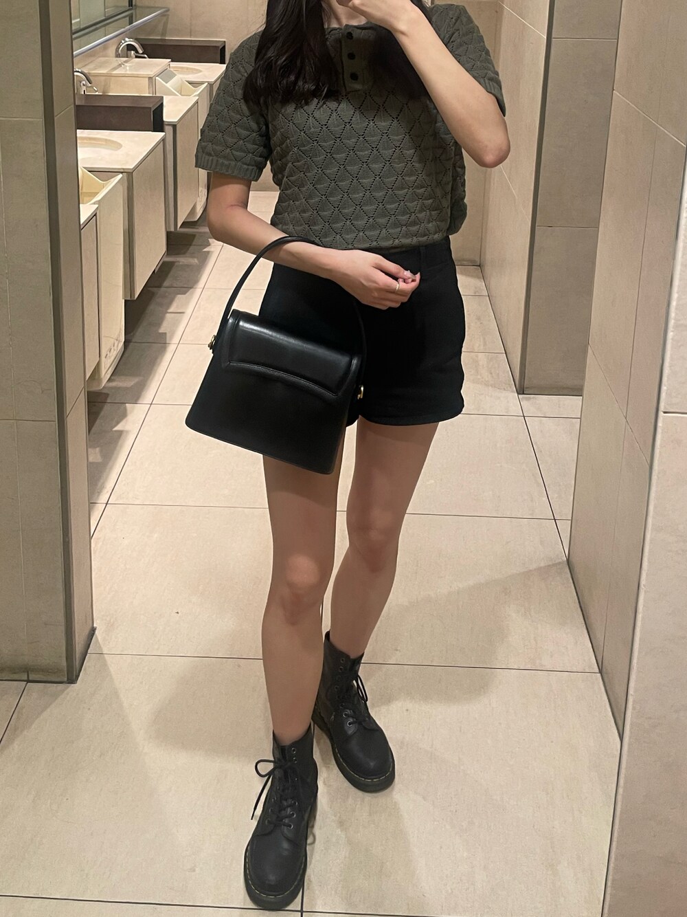 またまたカーキで秋色とブーツ!🥾 でも暑いので半袖半ズボン、、、( ˊᵕˋ ;)