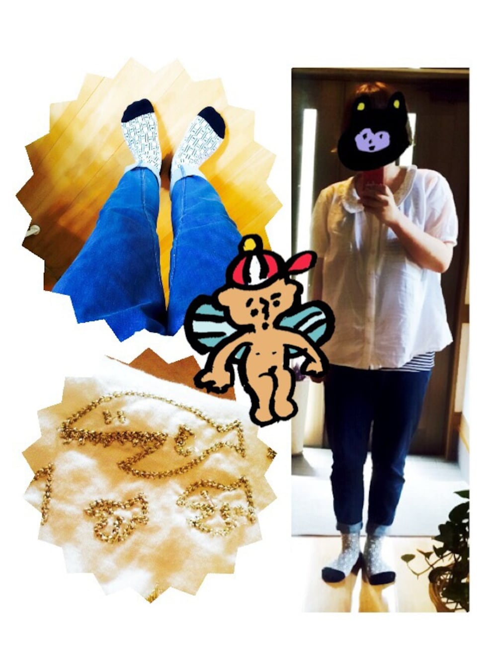 今日も仕事〜 シャツは襟に魚の刺繍があってお気に入り\( ˆoˆ )/ 魚柄大好き! デニムは旦那用に買ったけど「股がダボダボしてるのは嫌!」と拒否されたのでわたしのものに… 悔しい…いつか履かせたい…