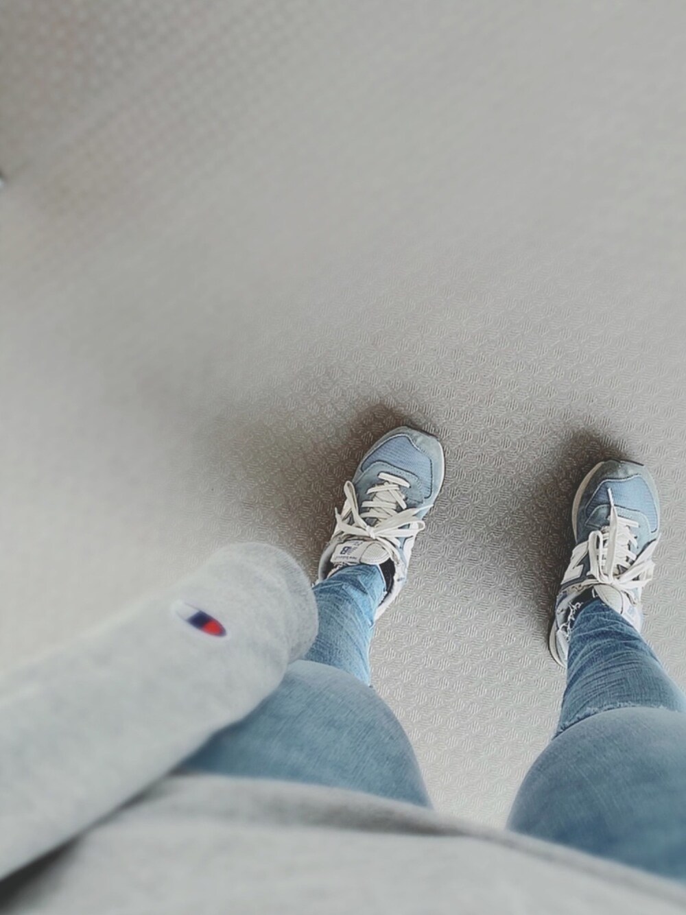 毎度毎度全身黒ずくめな自分としては グレーとブルーの爽やかコーデ