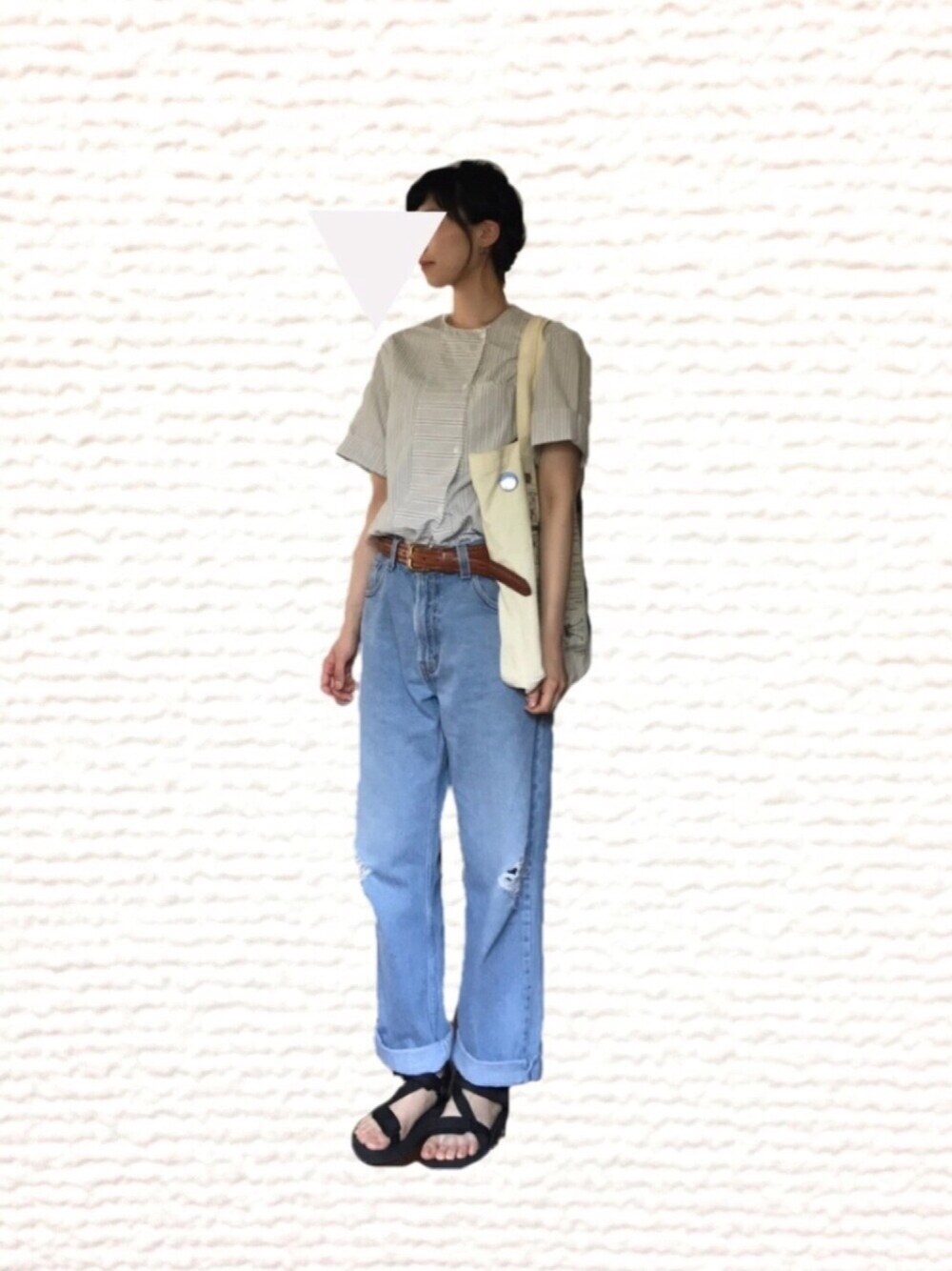 サンダルとトート以外全部古着!!(人´_`) ベルトもデニムもノーカラーのシャツも お気に入りのものです☆ 古着はよく吟味するので お気に入り感が強くなります このシャツはデザインに一目惚れでした ヨーロッパの方の 独特のデザインだったようです ちなみに久しぶりのディズニーシーに行くのでか何着るか考えてたコーデでした!