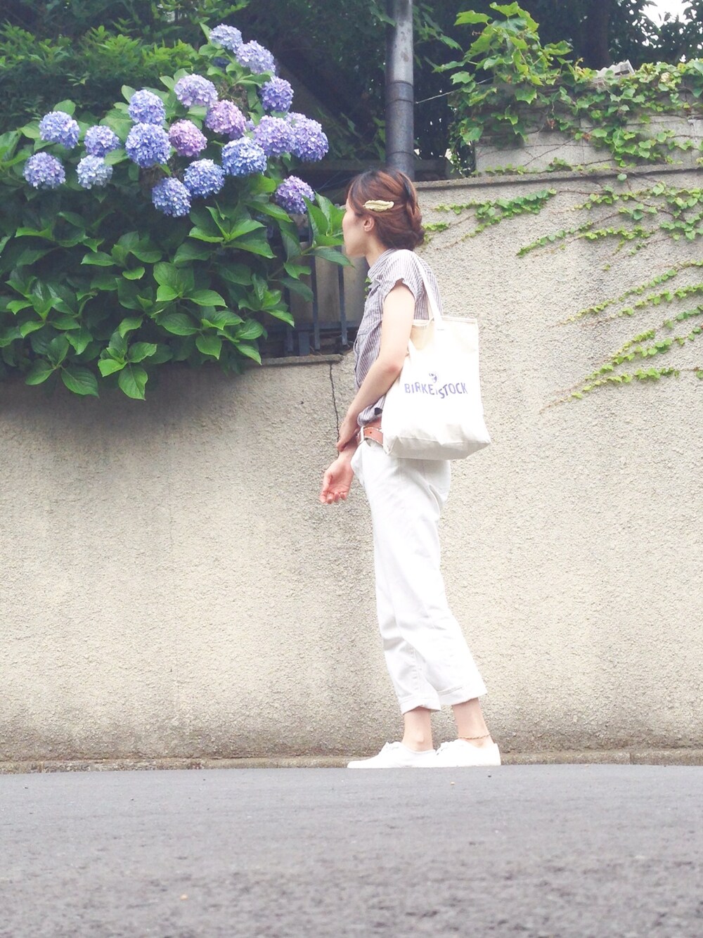ホワイト系多めのコーディネート 爽やかに 今日は雨が降るかな.....☂