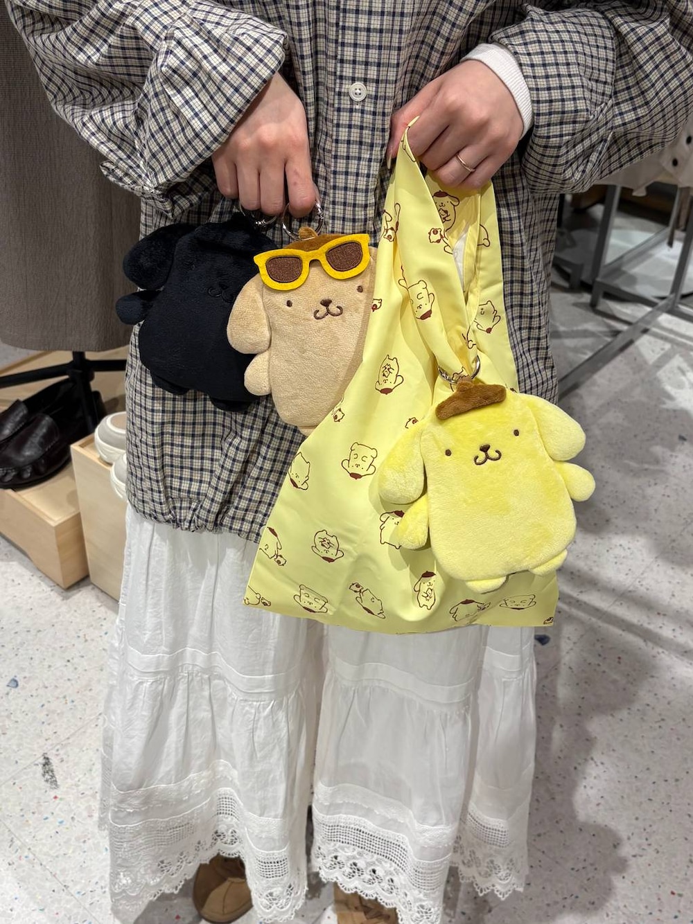 ao(LOWRYS FARM 梅田ヘップファイブ)のエコバッグ/サブバッグ「【ポムポムプリン】ポーチ付きエコBAG 631402」を使ったコーディネート