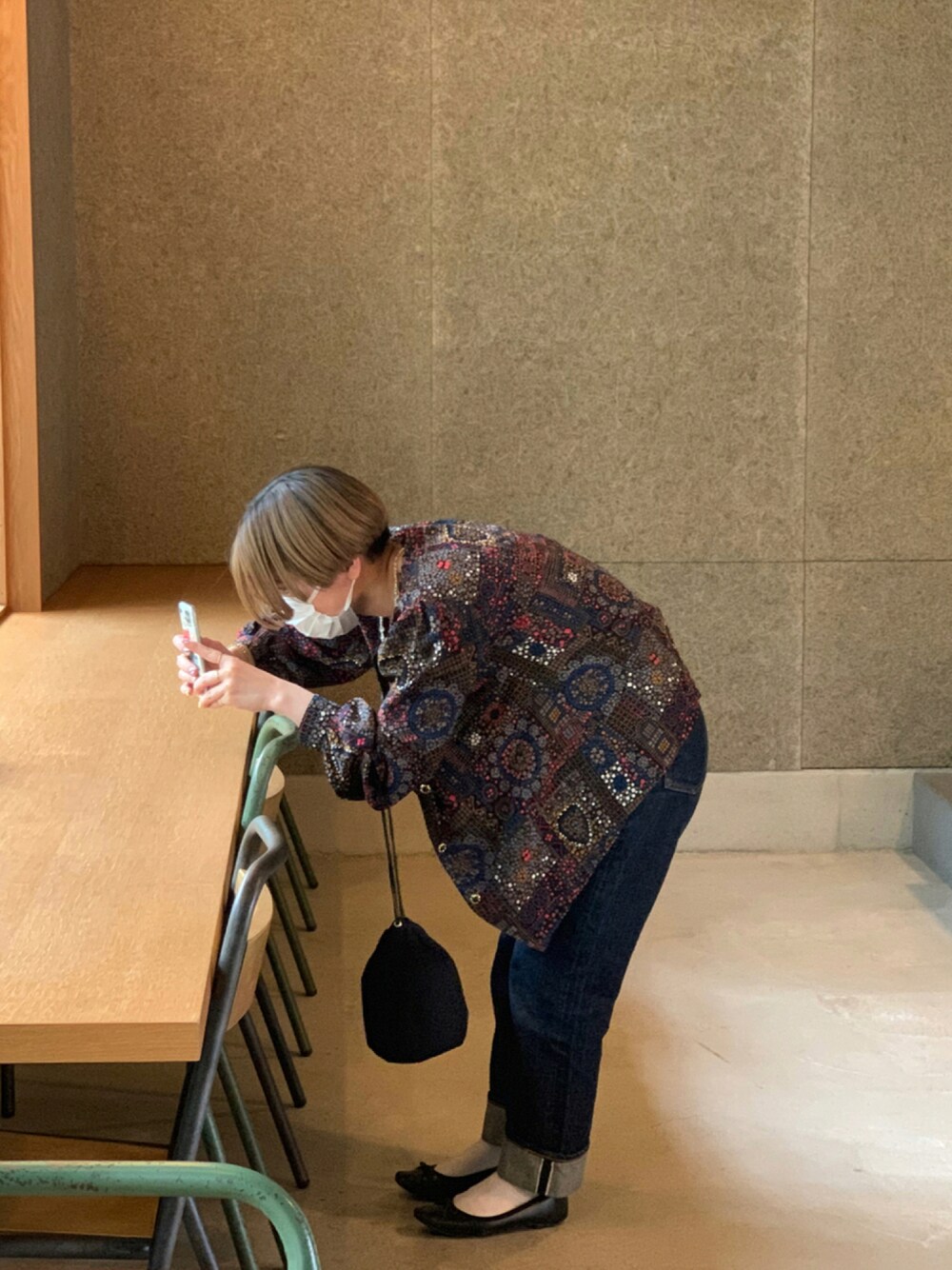 tops:hand-me-down(昭和古着) bottoms:JOHNBULL bag:バンドグッズ(yonawo) 姿勢も相まってとってもおばあちゃん