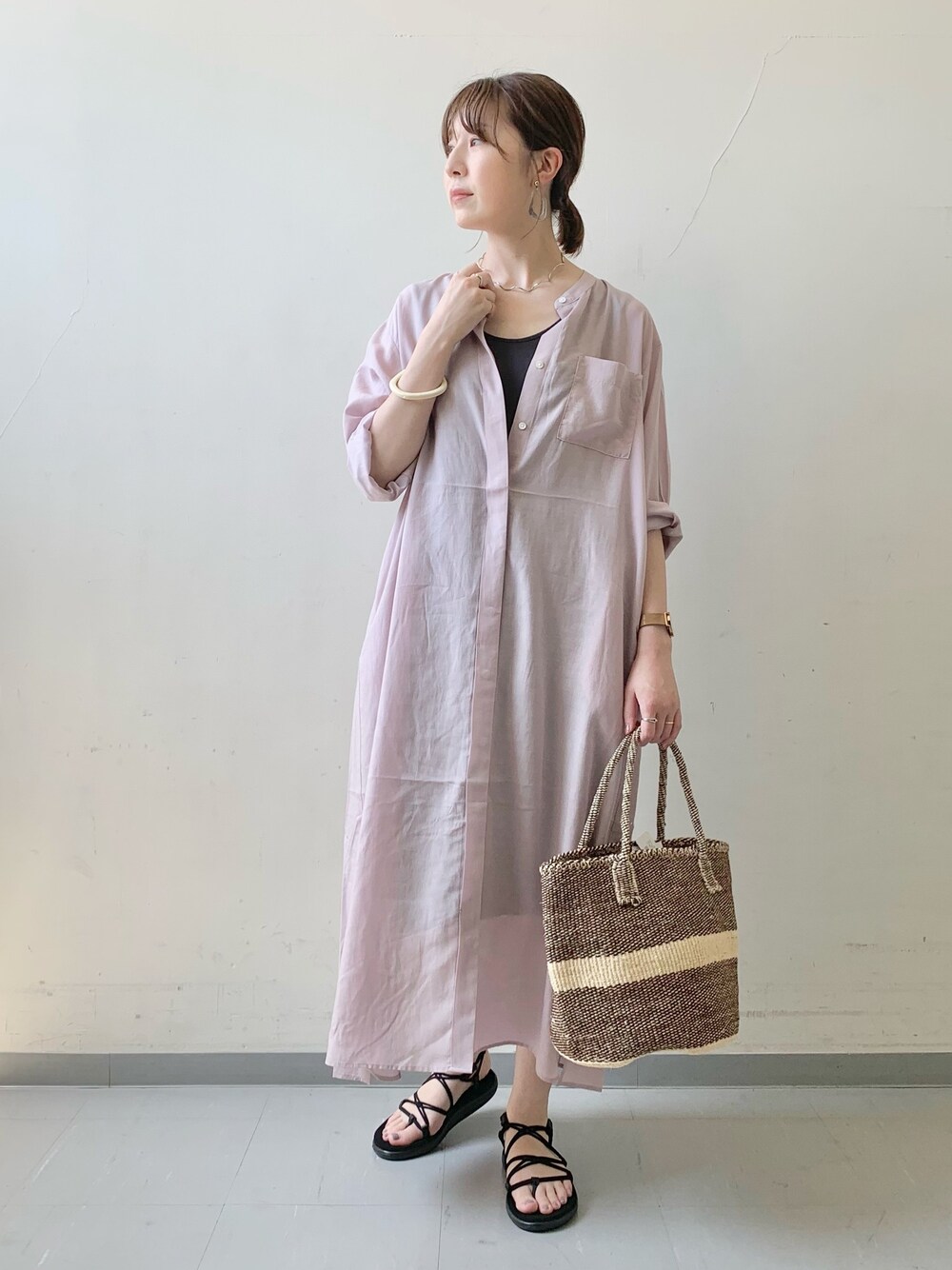 holly(DOORS セルバ仙台泉)のワンピース「スタンドカラーロングシャツワンピース」を使ったコーディネート