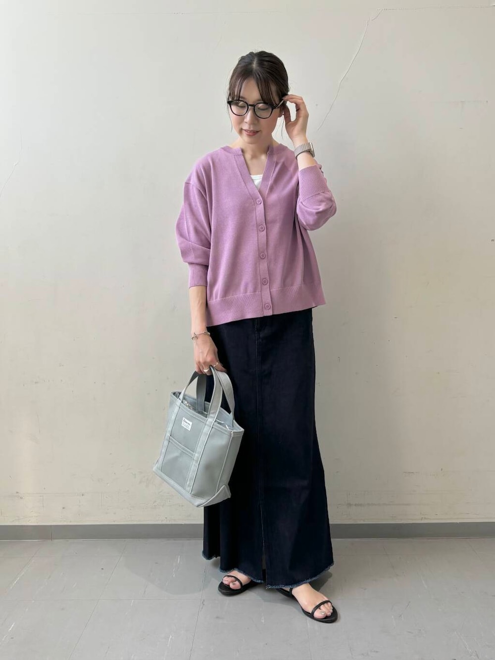 holly(DOORS セルバ仙台泉)のカーディガン/ボレロ「ドライタッチキーネックカーディガン」を使ったコーディネート