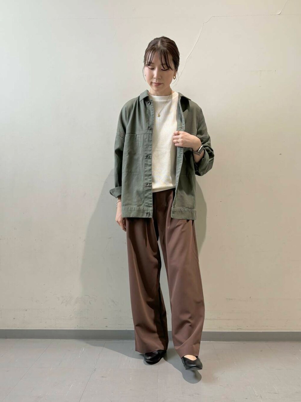 コットン生地のジャケットはアウター感が強過ぎなくて 冬のコートに行くまでの期間けっこう使えますよね♩ ジャケットの裾がボタンで少し締めれる仕様になってまして、今回締めてます。 そうすると裾が内側に少し入るシルエットになるのでちょっとメリハリ✨ しっかり生地なのに柔らかい生地で着やすいジャケットですよ☺️ トップスは柔らかくてゆったり、 でもメリハリ付く形でオススメ!! パンツはトラウザー好きのホリグチは大好きな形です♩ スウェットとかカジュアルなアイテムとあわせたいですね😊 深みのあるブラウンがくすみカラーとも相性◎ ーーーーーーーーーーーーーーー ▶︎LINE接客行っております。 DOORSセルバ仙台泉店ID @126pzzxx 着心地や丈感、生地の事、何か聞きたい事など お気軽にこちらをご活用下さいませ^^ ▶︎オンラインの商品が店舗に取り寄せ・取り置きが可能なとても便利なサービス「トリおけーる」も是非ご利用ください。 URBAN RESEARCH DOORSセルバ仙台泉店 tel:050-2017-9104