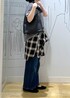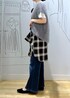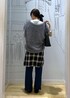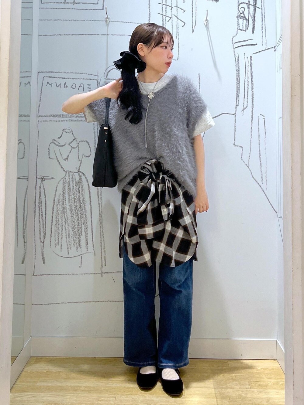 全体をブラックやグレーで合わせ、落ち着きのある シックなコーディネートにしました 全体的にゆったり感がありますが、細身のフレアデニムで バランスを取り、下半身はキレイに見せることができます