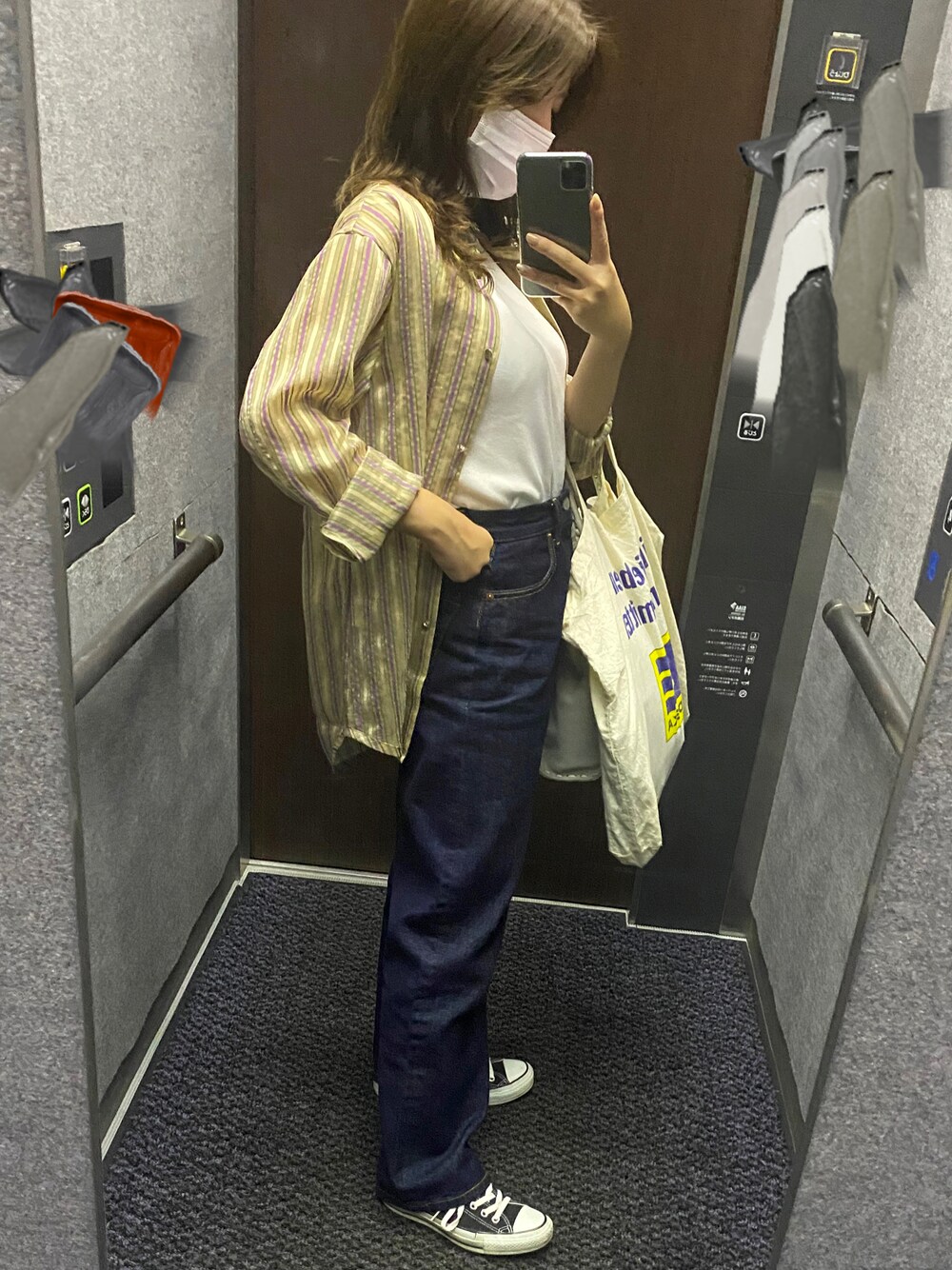 同期がデニムをくれたからさっそく! シルエットがとっても綺麗~~~足が長くみえるのだ🐾 分かりずらいけど
