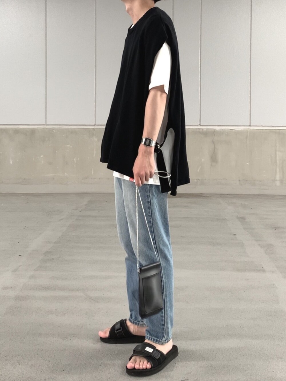 みっち~のベスト「WEARISTA れぽすけ × INTER FACTORY side belted vest/サイドベルテッドベスト」を使ったコーディネート