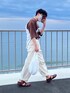 コンバンハ🌙 海✖︎白パンツ 爽やかで良いですよね! 白とブラウンも合います^ ^