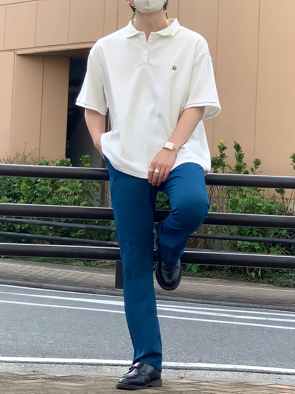 おはようございます🌱 爽やかに たまには細身のパンツで